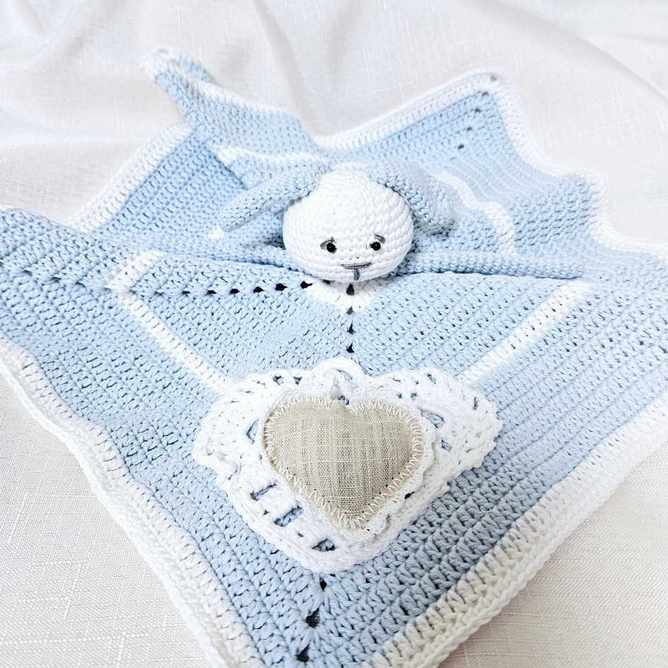 Švelniai mėlynas migdukas su levandų pagalvėle