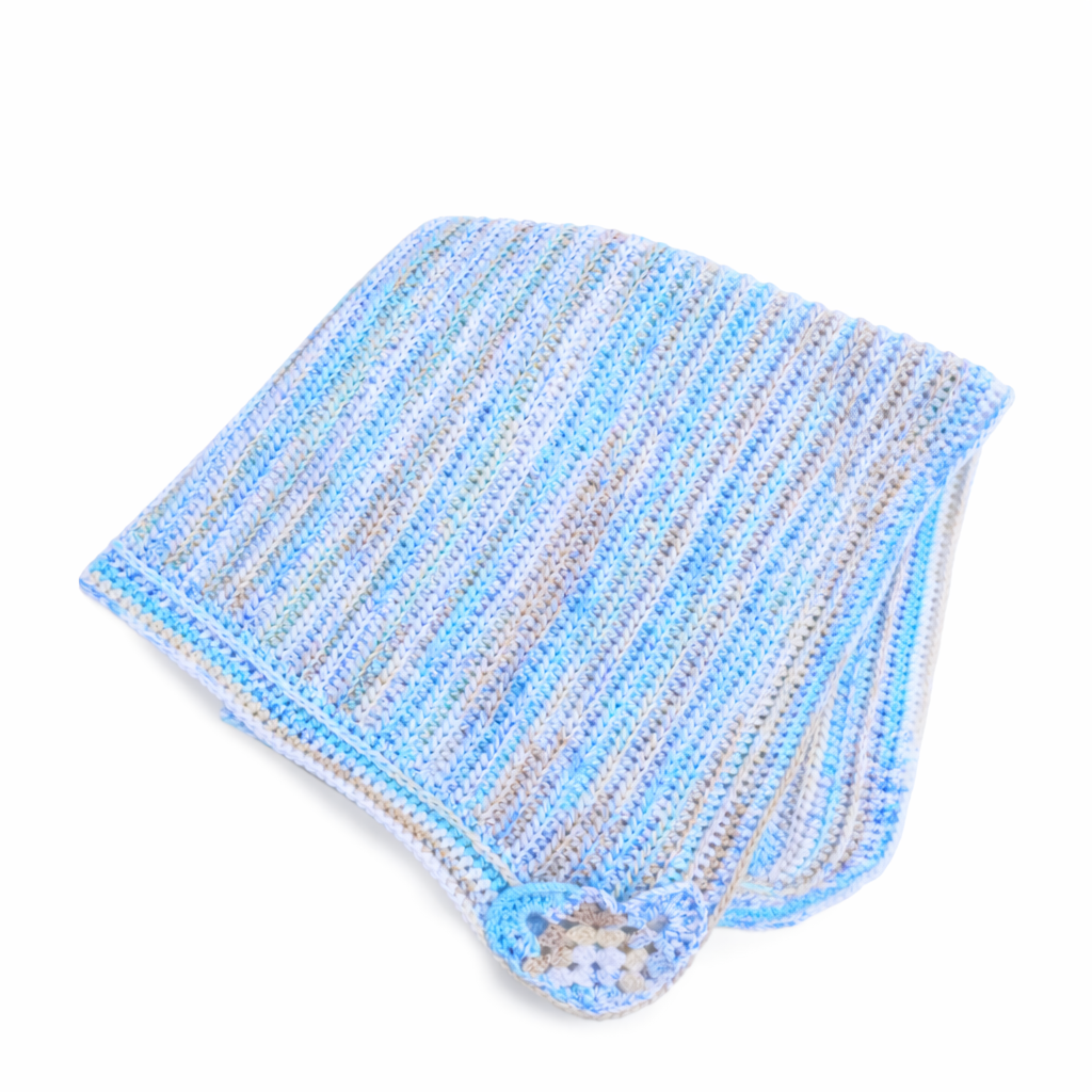 Mėlynas rankų darbo kūdikio pledas su kišenėle