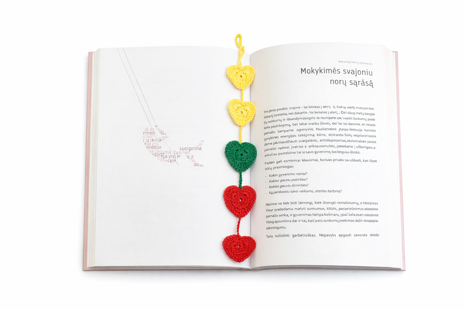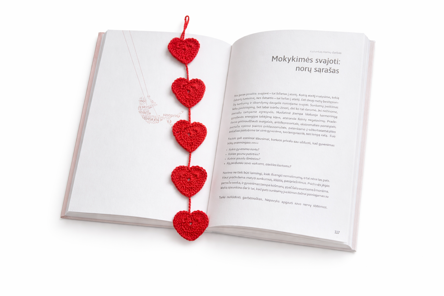 Rankų darbo širdelių knygų skirtukas „Meilės gija“