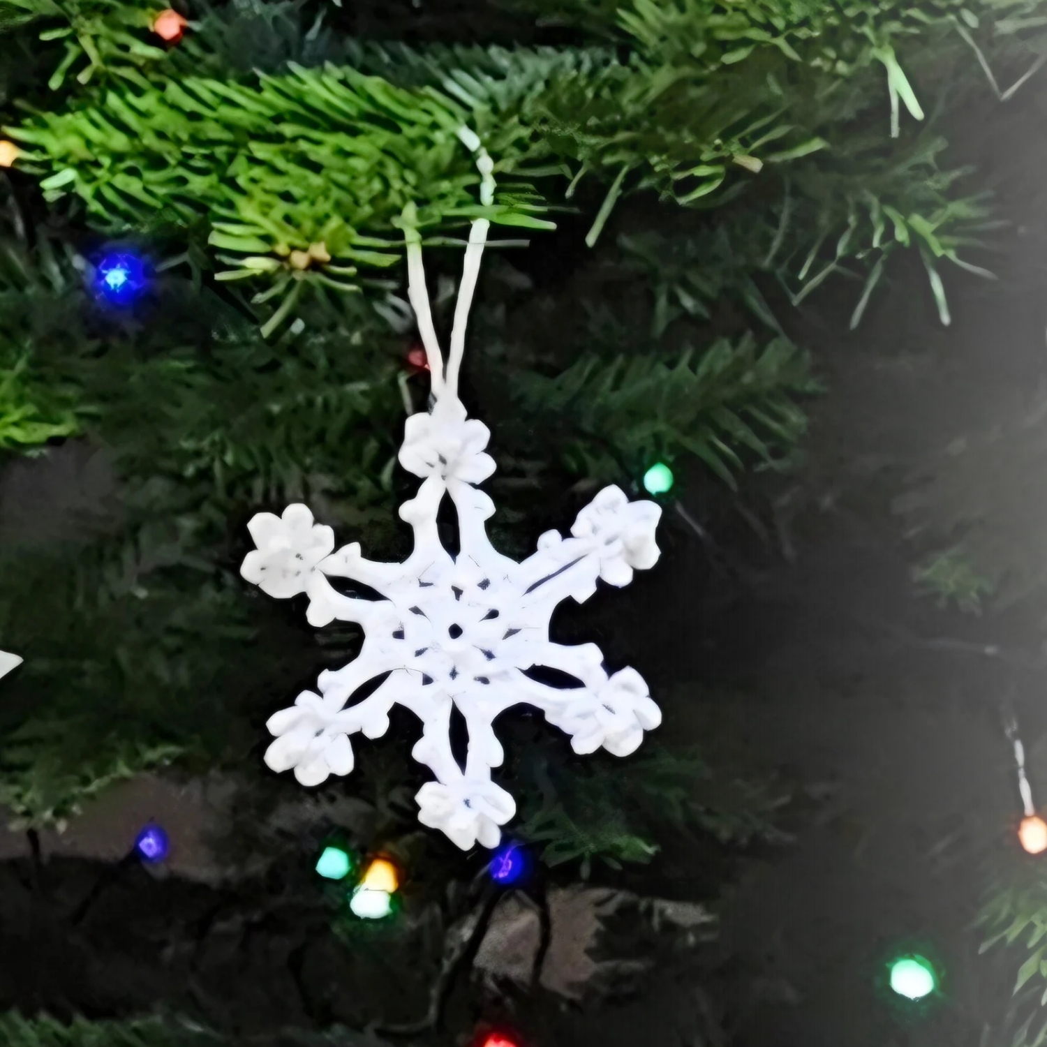 „Šalčio rašto snaigė“ – subtilus rankų darbo Kalėdų eglutės papuošimas, įkvėptas žiemiško grožio ir gamtos tylos.