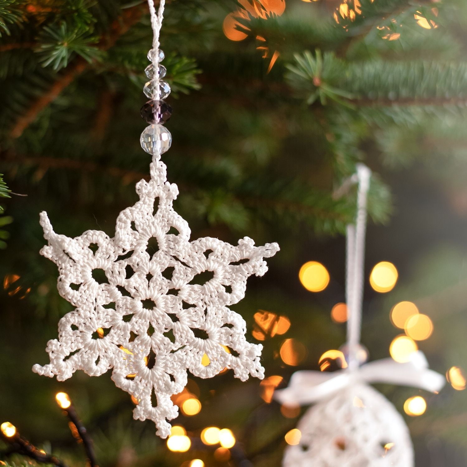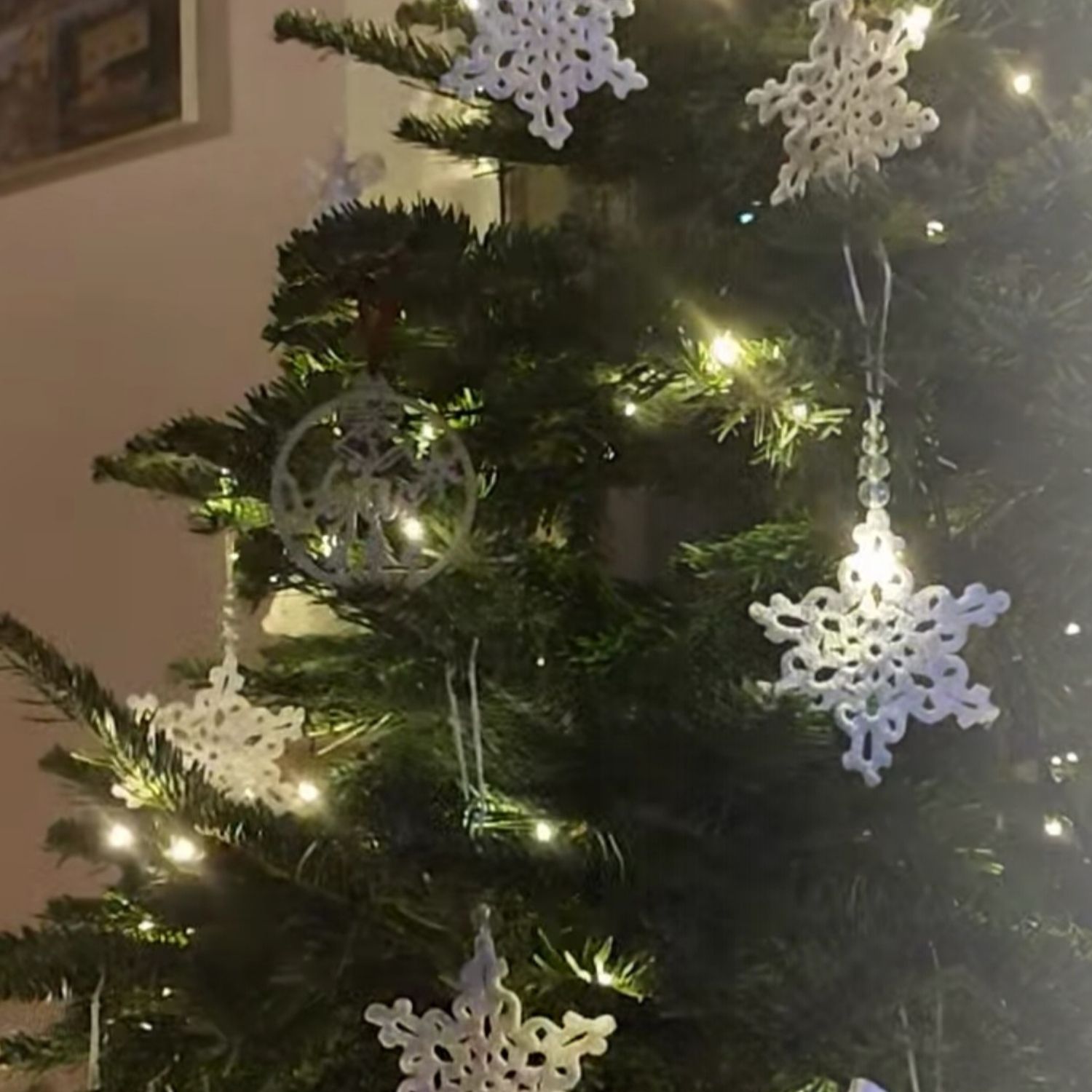 „Spindinti snaigė“ – tai rankų darbo nerta Kalėdų eglutės puošmena, kuri spindi subtilia šviesa ir šiluma. Kiekviena snaigė nunerta su meile iš baltų medvilninių siūlų, papuošta čekiškais stiklo karoliukais, kurie gražiai atspindi šviesą tarp eglutės lempučių.